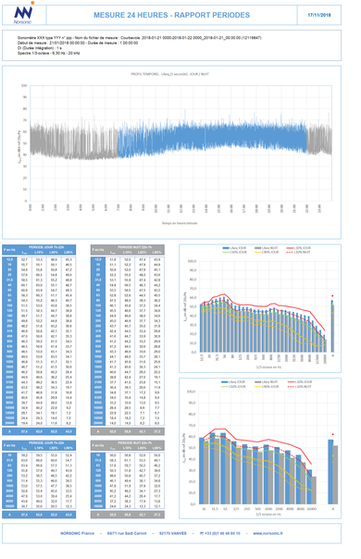 En plus d'être un outil de terrain idéal pour traiter l'acoustique du bâtiment, un sonomètre, ou plusieurs, peuvent être pilotés en wifi par le logiciel Nor850 pour réaliser des mesures spécifiques normalisées :